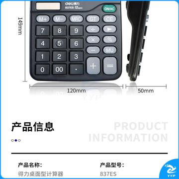 得力(deli)双电源桌面办公计算器 12位大屏幕桌面计算机 办公文具用品 837ES
