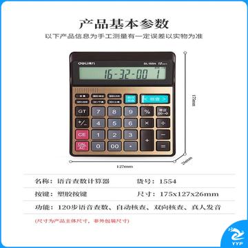 得力(deli)可查数后退修正语音计算器 真人语音播报计算机 金色1554