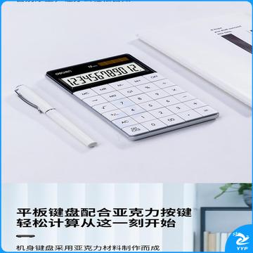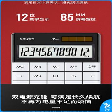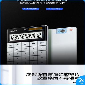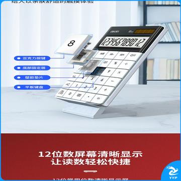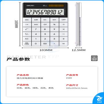 得力(deli)双电源时尚计算器 轻薄机身平板按键桌面计算机 办公用品 白色1589
