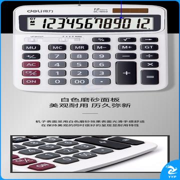 得力(deli)双电源财务计算器 12位大屏桌面计算机 白色