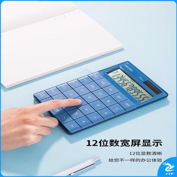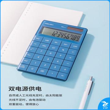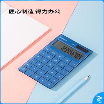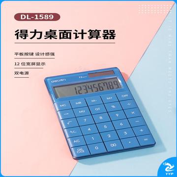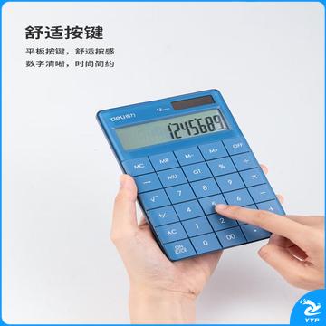 得力(deli)双电源时尚计算器 轻薄机身平板按键桌面计算机 办公用品 白色1589