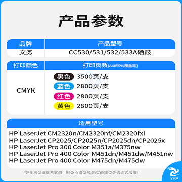 文务CC531A C 硒鼓适用惠普 LaserJet CP2025 CM2320 M351a 【2800页】蓝色易加粉硒鼓