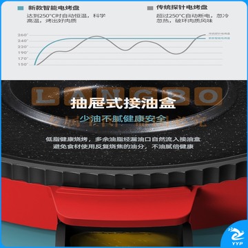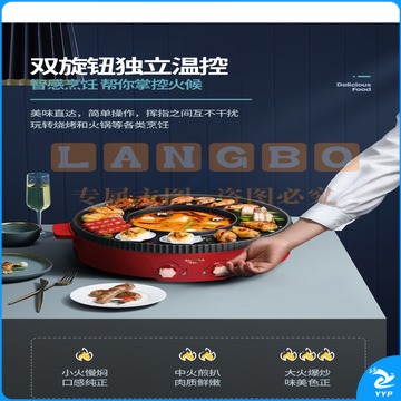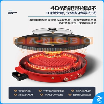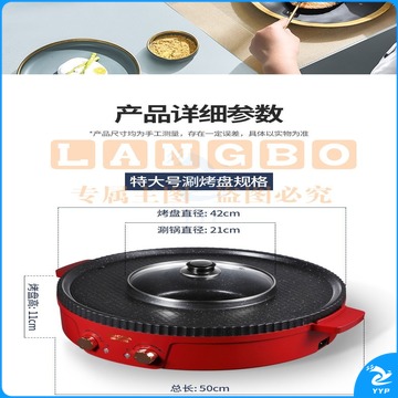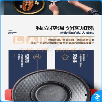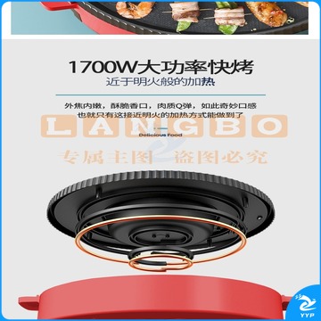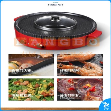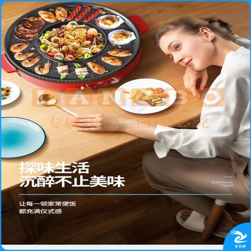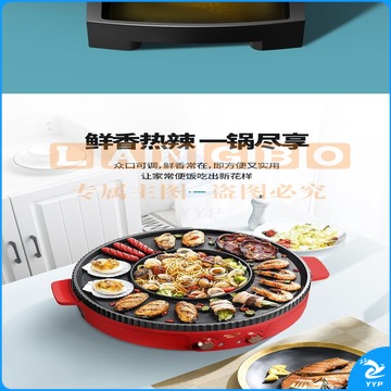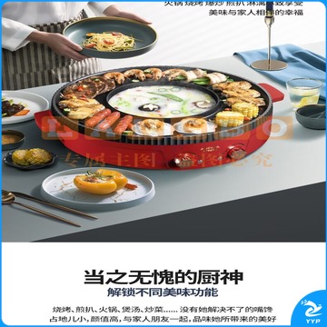 澳柯玛(AUCMA) 多功能火锅电烧烤炉一体锅家用韩式烤盘涮烤两用烤肉多功能电烤盘 AKJK-11D 红色