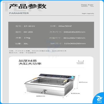 东贝 电炸锅单缸商用电炸炉大容量加厚加长油炸机 EF-301V 货号:JC