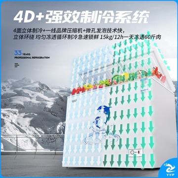 澳柯玛(AUCMA)冰柜双温302升 冷藏冷冻双温双箱铜管卧式小冷柜 商用速冻保鲜冰箱BCD-302CNE