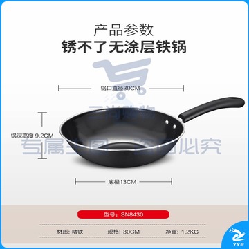 爱仕达(ASD)炒锅不易锈铁锅 CF30B1TG 30CM 精铁炒锅