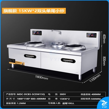 麦大厨 旗舰款炒灶 380V 15KW*2 400双头单尾小炒炉(配50炒锅)