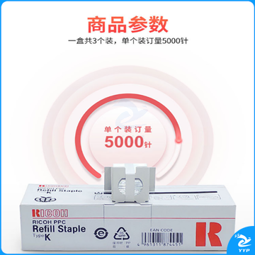 理光(Ricoh)K型 钉书针补充型(5000针*3) 适用于SR3220