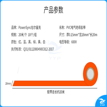 包尔星克 10入PVC电气绝缘胶带 红色 BTB-202 10卷/组(组)