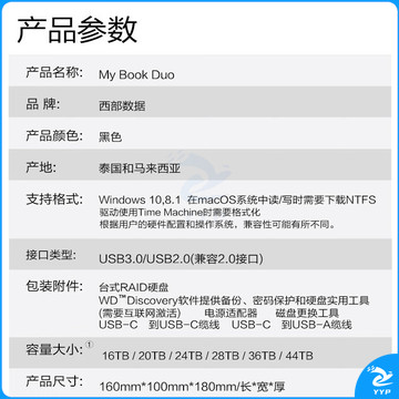西部数据(WD)My Book 移动硬盘40TB 3.5英寸桌面硬盘加密 双盘位40TB 定制