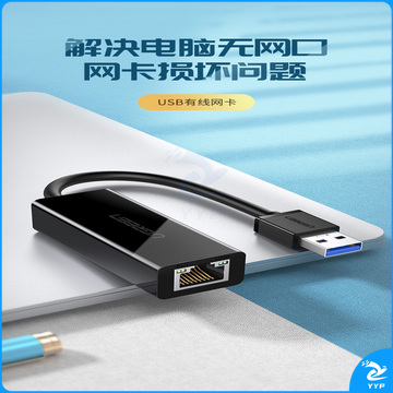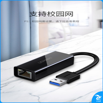 绿联 USB转RJ45网线接口网卡转换器免驱动适用小米盒子苹果华为笔记本电脑外置网口转接头 黑色标准款