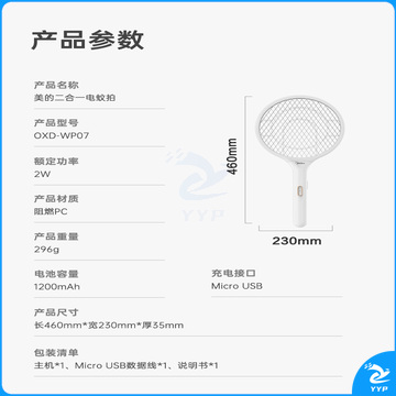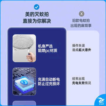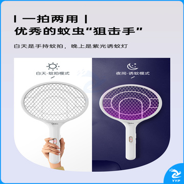 美的(Midea)电蚊拍充电式灭蚊拍紫光诱蚊灭蚊灯灭蚊器蚊子拍苍蝇神器灯拍两用