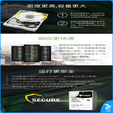 希捷(Seagate)企业级硬盘 10TB 256MB 7200RPM SATA接口 希捷银河Exos 7E10系列 ST10000NM017B