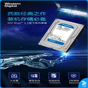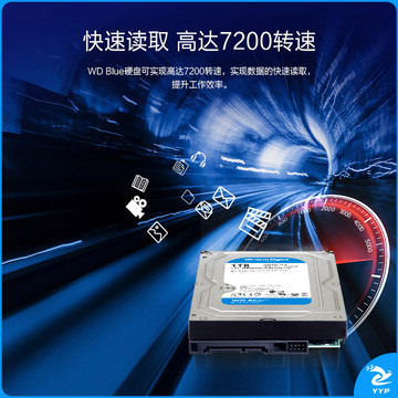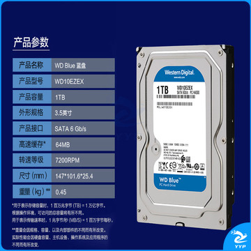西部数据(WD)蓝盘 1TB SATA6Gb/s 7200转64MB 台式机械硬盘(WD10EZEX)