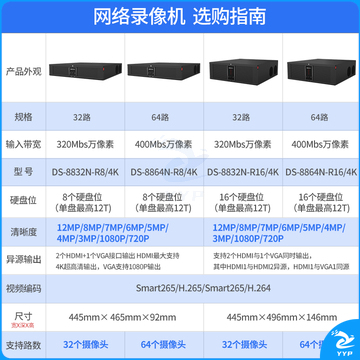 海康威视DS-8664N-I16监控硬盘录像机64路NVR网络主机16盘位