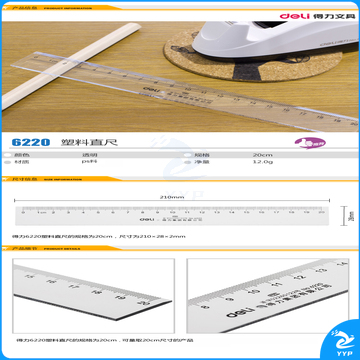 得力(deli)20cm办公通用直尺 测量绘图尺子 办公用品 6220