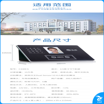汉王(Hanvon)智能人脸考勤机 面部识别签到 刷脸上下班打卡机 快速人脸识别打卡器C330ES