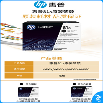 惠普(HP)CF281A 81A 黑色硒鼓(适用M604 M605 M606 M630 系列)约10500页