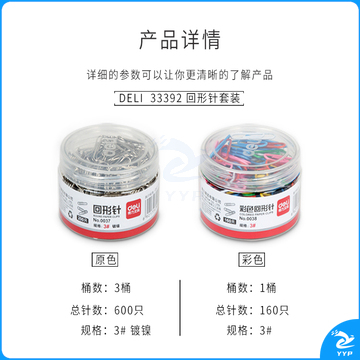 得力(deli)镀镍回形针套装 银色29mm回形针600枚+彩色29mm回形针160枚 办公用品 33392