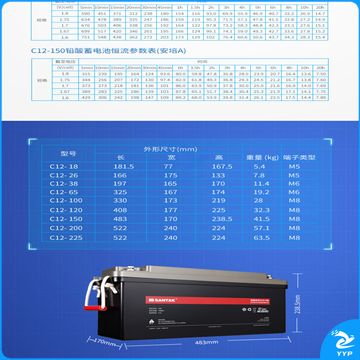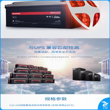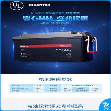 山特(SANTAK) 山特UPS电池铅酸蓄电池免维护12V150AH C12-150 蓄电池