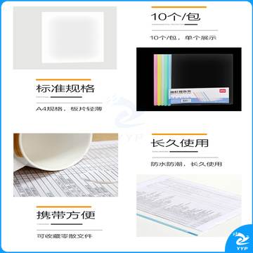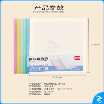 得力(deli)10只A4透明拉杆夹 彩色抽杆报告夹简历夹文件资料夹 5色装33321