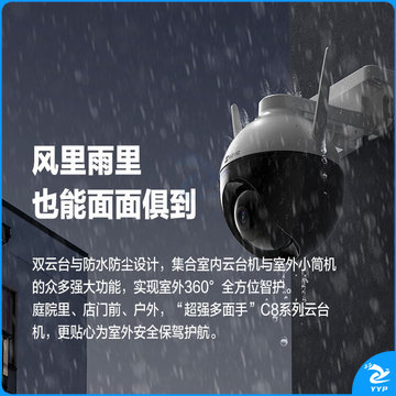萤石 EZVIZ C8C 4mm 200万高清wifi室外双云台 安防监控摄像头 防水防尘 手机远程 人形检测 H.265编码