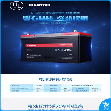 山特(SANTAK) 山特UPS电池铅酸蓄电池免维护12V100AH C12-100 蓄电池