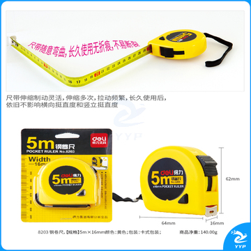 商品净重:140.00g8203 钢卷尺,【规格】5m×16mm颜色:黄色;包装:卡式包装;