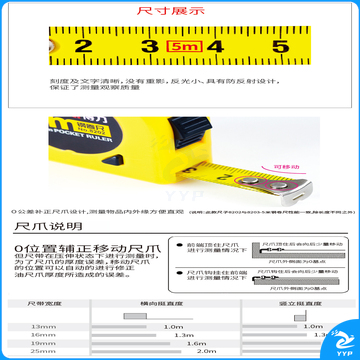 0公差补正尺爪设计,测量物品内外缘方便直观(说明:此款尺子8202与8203-5米钢卷尺性能一致,除长度不同之外)