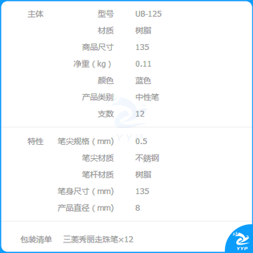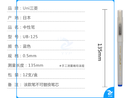 三菱(Uni) UB-125 走珠笔(耐水)中性笔(蓝色)0.5MM(12支装)