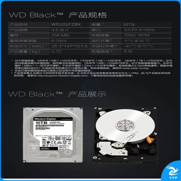 西部数据(Western Digital) 黑盘 10TB SATA6Gb/s 7200转 256M 台式游戏硬盘