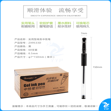 广博(GuangBo) 0.5mm黑色中性笔 办公签字笔 水笔60支装ZX9533D