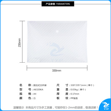广博(GuangBo) A4透明文件袋 按扣档案袋 资料袋 10只装 A6320KA
