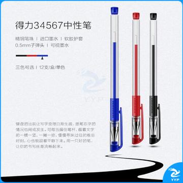 得力(deli)0.5mm办公中性笔 水笔签字笔 12支/盒红色34567 办公用品