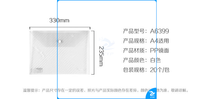 广博(GuangBo) 白色A4透明文件袋 按扣档案袋 办公用品 20个装 A6399