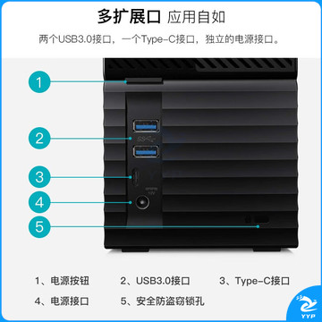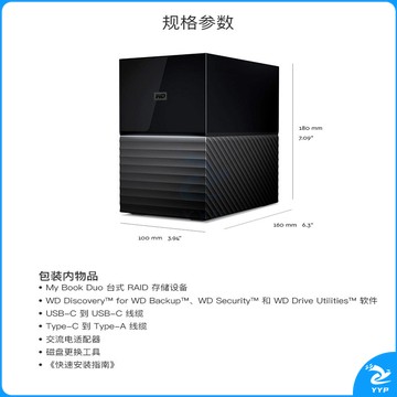 西部数据(WD)My Book3.5英寸移动硬盘20T加密硬盘 2盘位磁盘阵列 BOOK Duo 20TB【WDBFBE0200JBK】