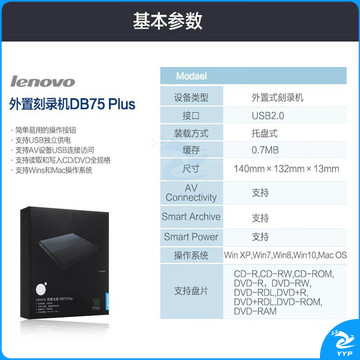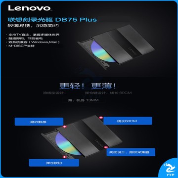 联想(Lenovo)DB75 plus 外置光驱 DVD刻录机(黑色)