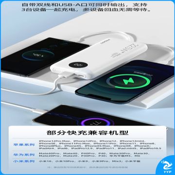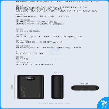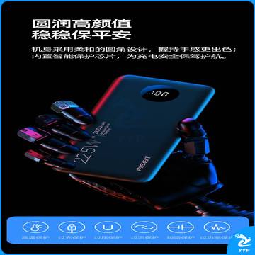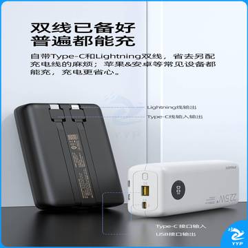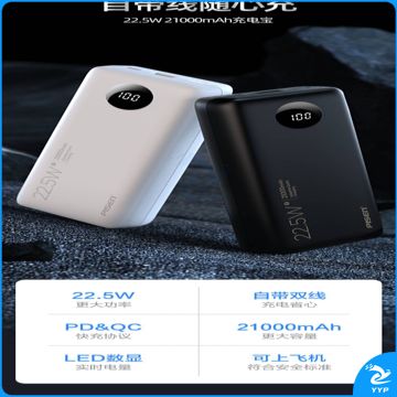 品胜22.5W超级快充充电宝双自带线Type-c双向快充21000毫安时2万大容量户外移动电源适用苹果14/13华为小米