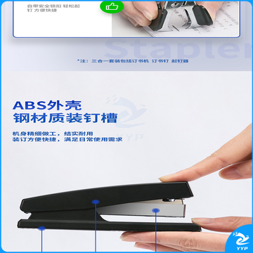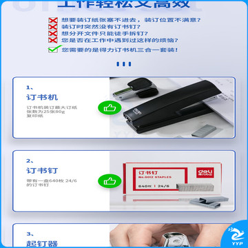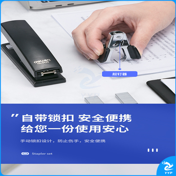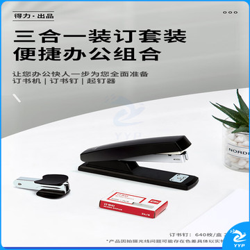得力(deli)12#办公订书机3件套(订书器+订书钉+起钉器) 办公用品 黑色0354