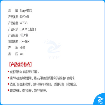 索尼(SONY) DVD空白光盘DVD+R空白光盘刻录碟 刻录盘 DVD-R可打印( 50片桶装)链接为1片