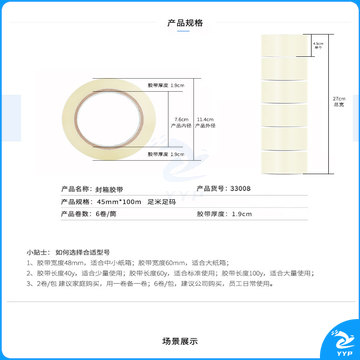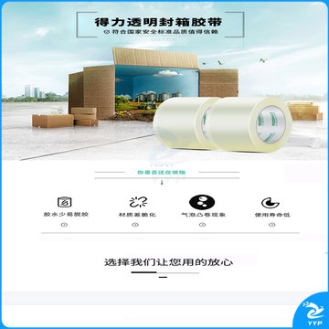 得力(deli)高品质透明封箱胶带/打包胶带 45mm*100m*50um 6卷/筒 办公用品 33008