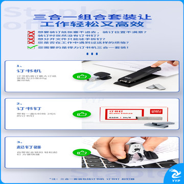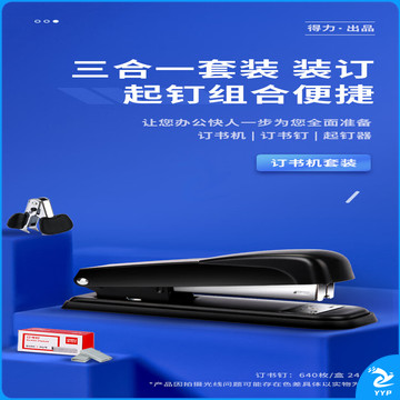 得力(deli)钢制耐用办公订书机套装(订书器+起钉器+订书钉) 适配12#钉 办公用品 黑色0359
