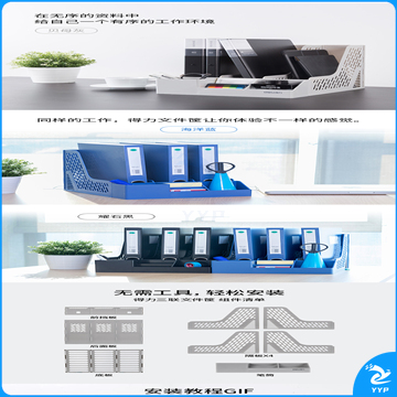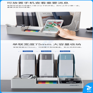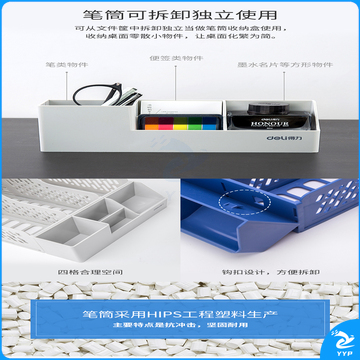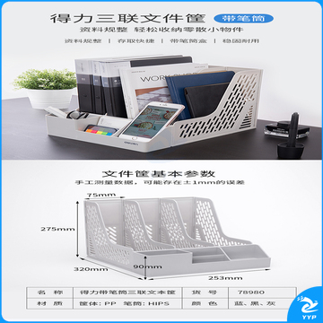 得力(deli)三联带笔筒收纳桌面文件框 多功能镂空文件栏/文件框/资料筐 办公用品 黑色78980