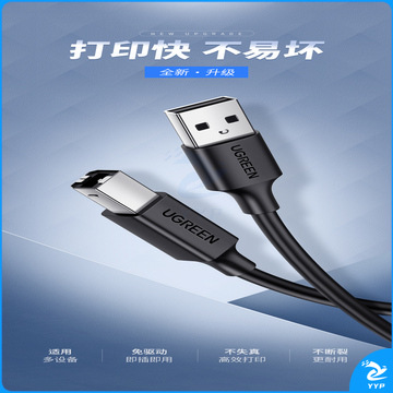 绿联(UGREEN)打印机数据线 USB方口接头高速打印线 通用惠普HP佳能爱普生打印机连接线 3米 黑