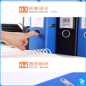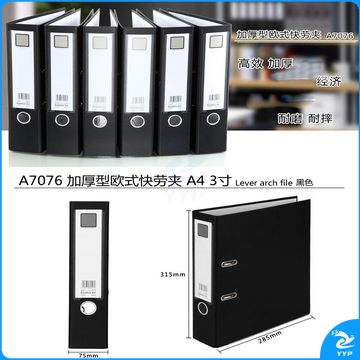 齐心(COMIX)PVC3寸加厚型欧式快劳夹 文件夹 PP快劳夹 A4文件夹带孔资料夹 两孔活页夹 黑色 6个装 A7076