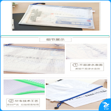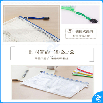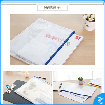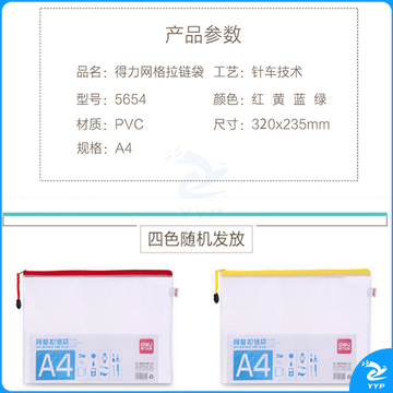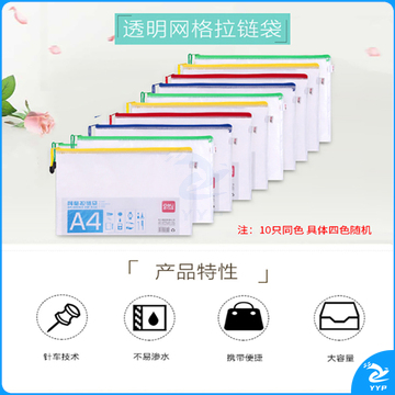 得力(deli)10只A4透明网格拉链袋 资料文件袋 单色随机5654