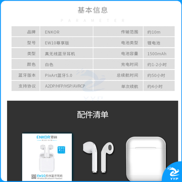 恩科(ENKOR)EW10 真无线蓝牙耳机适用于苹果iphone7/8/X Air运动双耳入耳式迷你超小手机耳机 5.0尊享版