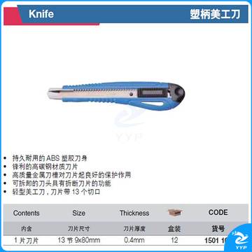 宝合1501101/塑柄美工刀9x80mm蓝色(个)