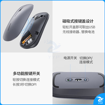 绿联 无线鼠标 2.4G/蓝牙双模鼠标 便携办公轻音鼠标 适用苹果华为联想台式机笔记本电脑 星夜黑【蓝牙+USB接收】器