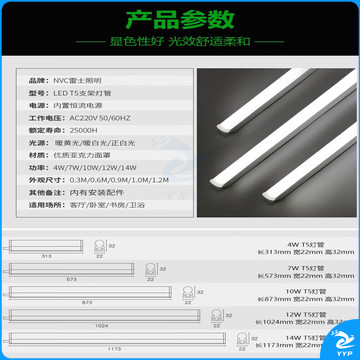 雷士照明(NVC)LEDT5灯管 一体支架 14W (1.2m) 正白光